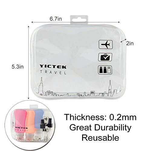 - DURABLE CLEAR TOILETRY BAG,STAY ORGANIZED:THERE IS NO MORE FRUSTRATION at getting the leaky and flimsy sandwich bags ,this clear toiletry bag is transparent and waterproof,made of premiere PVC material,Environmentally Friendly to hold all your liquids when you are traveling.Perfect for keeping your Bottles, Containers, Cosmetics,Small Toiletries, and Liquids in One Place.BAG MEASURES(6.7x5.3x2.0inches)