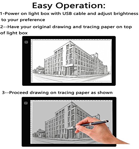 A4 Ultra-thin Portable LED Light Box Tracer USB Power Cable Dimmable Brightness LED Artcraft Tracing Light Pad Light Box for Artists Drawing Sketching Animation Designing Stencilling X-ray Viewing