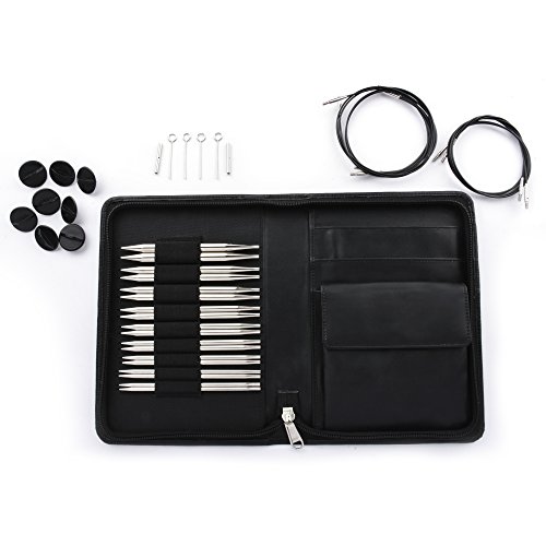 Fabart 38-Piece Interchangeable Nickel Plated Knitting Set with Stitch Holders and Cables