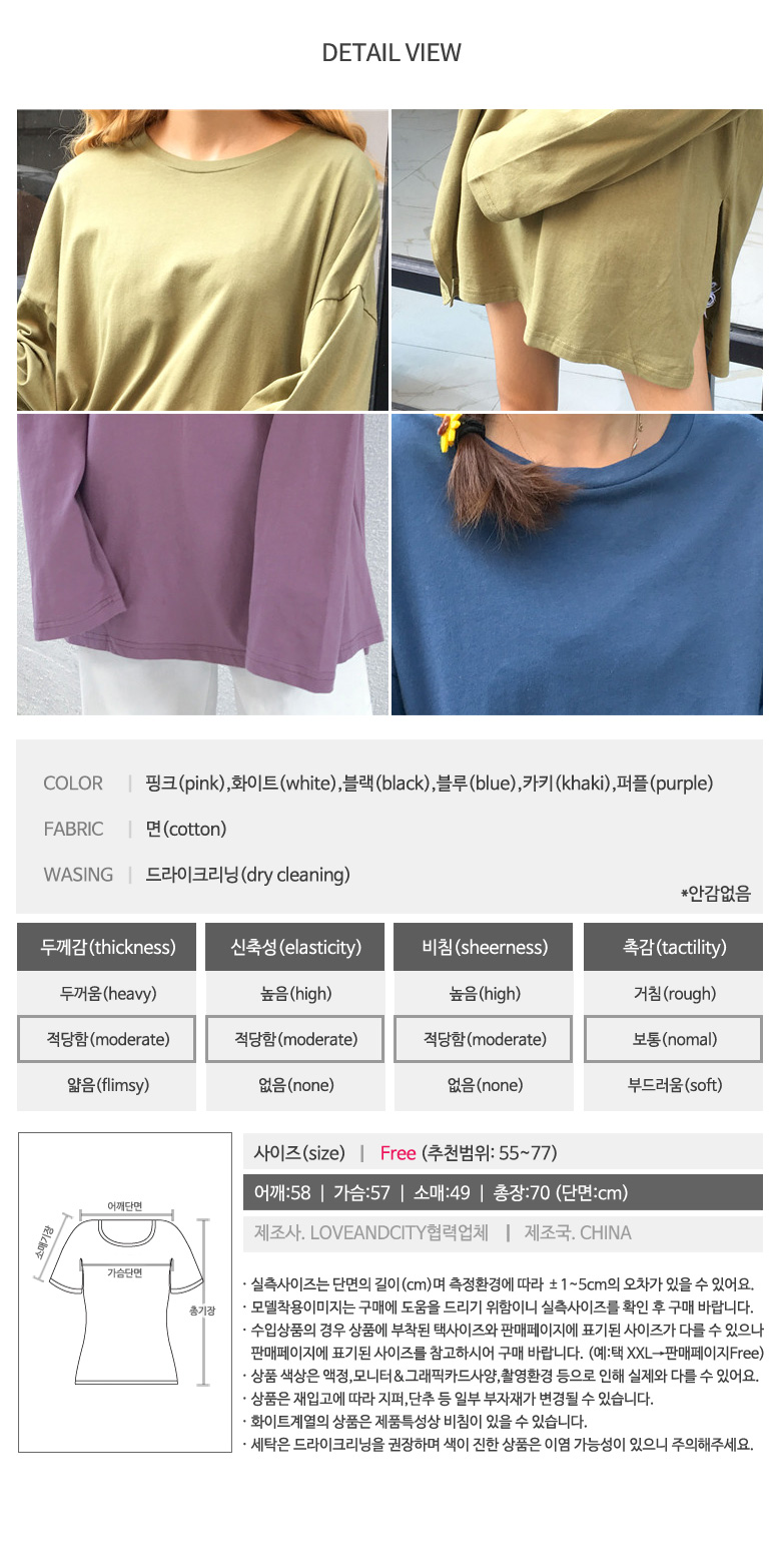 두께:보통 / 신축성:보통 / 촉감:보통 / 안감:없음