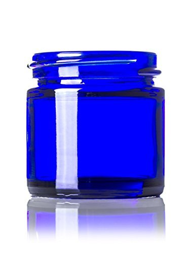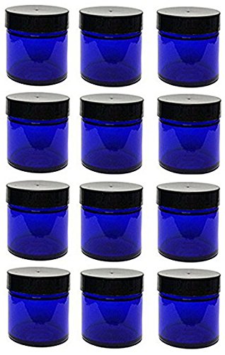 1 Ounce Cobalt Blue Glass Jars with Black Twist Lined Lid with Gift Card [Pack of 12]