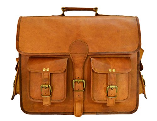-. Feature : Leather 100% / STYLE: Classic retro style bag.This bag has enough room for your books, Phones and other essentials. Leave an impression on your colleagues and your friends by this classic unisex bag. Carry your attitude on your sleeve with this stylish retro leather bag. Handcrafted skillfully with internal compartments and lining inside, this compact bag manages to give you your bit of space without missing out on style which speaks volumes / LEATHER MATERIAL: The oiled buffalo leather will wear over time which will give every bag that vintage character and their unique patina. Also the leather might feel a bit stiff in the starting but it loosens out with usage. / GENUINE: This shoulder satchel bag is beautifully handcrafted from 100% pure leather, designed purposefully for travel. Please note that since this is original leather bag it comes with a distinct smell which fades away after regular use. / BAG: This leather messenger bag can also be used as a work bag & comP.R.Ises of one internal compartments, two outer small compartments, safety buckle straps, easy to carry handle and inner canvas lining This briefcase satchel with adjustable shoulder strap is light weight & strong making you feel no pain even after a long tiring travel This briefcase satchel with adjustable shoulder strap is light weight & strong making you feel no pain even after a long tiring travel