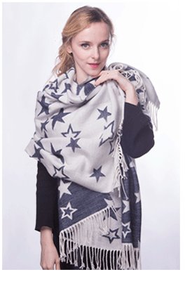 Extremely soft and warm, our fashion star big size scarf will be perfect to help you go through winter season. This wool shawl is great to wrap up with on cold autumn days and chilly nights.You will be able to wear this fashion scarf at night to go out, while lying on your sofa during a lazy day or in the plane to avoid a nasty cold.