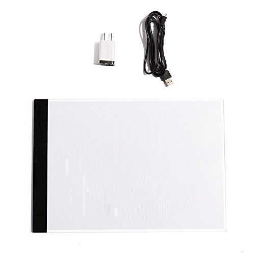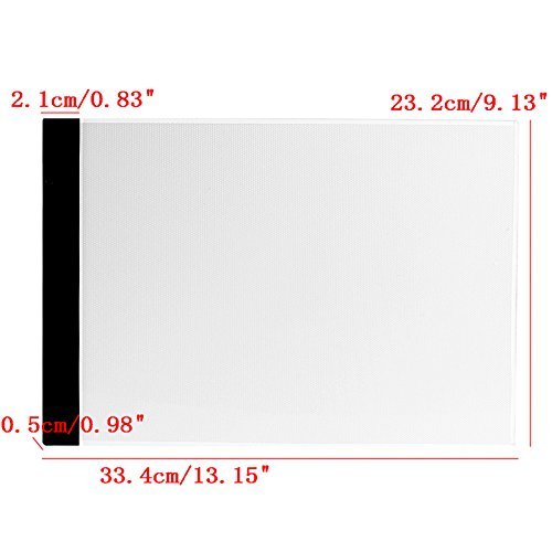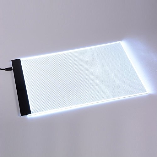 Material: Acrylic; Ultra-slim and Portable- The thickness is only 4mm which makes it portable. The illumination is perfectly even, super bright, and flicker-free
