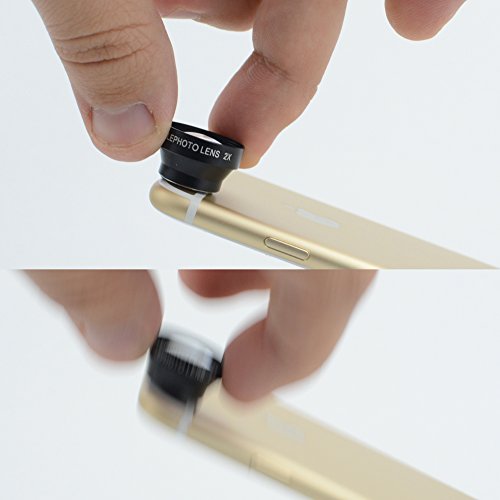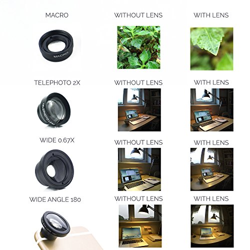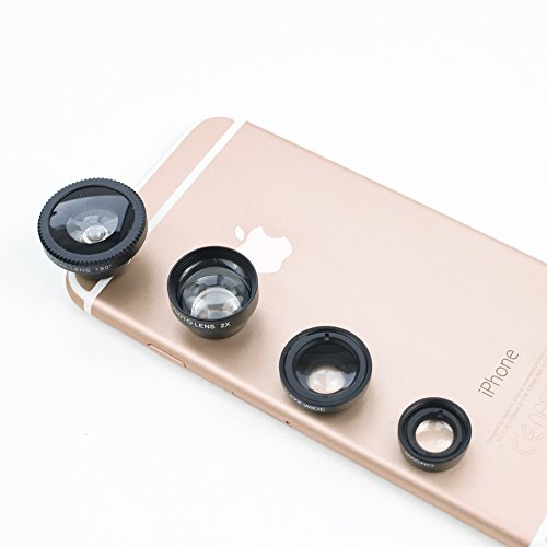 - Title : iPhone Lens 4 in 1 Magnetic Kit - Premium FishEye 180 Degree + 0.67 x Wide Angle + Telephoto Zoom In 2x + Macro for iPhone 6 6+ 6S 5C/S 5 Android SmartPhones + With FREE Tripod & Soft Microfiber Cloth