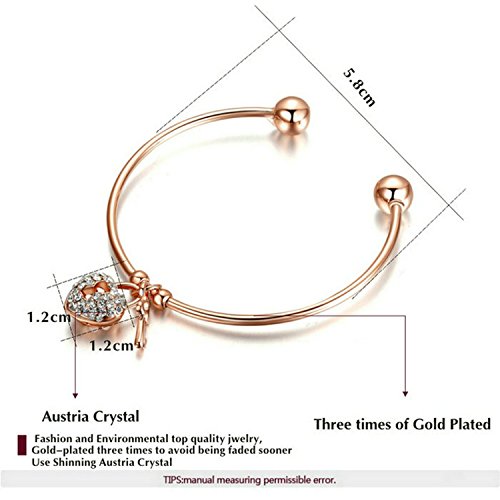 - Feature : The bracelet pendant is composed of a heart shaped lock and a key. The heart is covered with cubic zirconia sparkling beautifully. The bracelet is 18k rose gold plated. Polished finish. Nickel free and comfort fit. / Present the special one in your life with this charm bangle bracelet from Yoursfs will be a perfect choice. / The bracelet is about 2.4'' in diameter. The heart pendant size is about 0.5''*0.5''. / Shipped out in an exquisite jewelry gift box. Delivery time 7-15 days. / One year warranty to ensure you a perfect shopping experience.