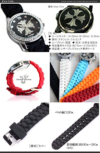 -. Feature : 個性的なジルコニアクロスフェイスの文字盤。 / 心地よい肌触り、快適なフィット感のラバーベルト。5カラー / ◆ ケースサイズ : H=38mm W=38mm D=8mm ◆ 素材:ステンレス / ◆ ムーブメント:国産 ◆ 防水:日常生活防水 ◆ 保証書付 / ◆ 有効着用サイズは:約15cm~21cm(9穴) ◆ Deep Zone ブレスウォッチ専用ケース