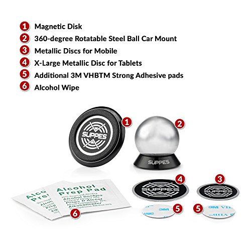 • BROAD COMPATIBILITY: Attach phones of any size on our holder. From iPhones to those enormous Galaxy Notes, they will all be securely hold in our product. Whatever your chosen brand, you can free your hands and keep your favorite smartphone useful and unharmed with the Suppes magnetic cell phone holder!