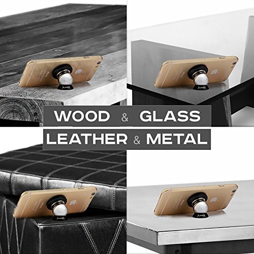 • SLEEK, CONVENIENT DESIGN: The Suppes cell phone holder is made of polished, reflective metal of black and silver coloring. It will look great in your car, and is well-suited in a professional office setting. Its design allows you to tilt and rotate the cell phone screen in any direction, so you can use it from every angle!