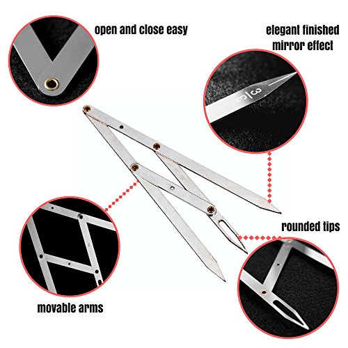 - CHARACTERISTICS - Easy to use tool. Made of stainless steel of elegant mirror finish, with flexible arms and removable ruler arm. DIMENSIONS: 6.7 * 1.9 * 0.1 inches (easy to transport). WEIGHT: 40g (Lightweight, foldable, easy to carry). Durable, reusable and capable of sterilizing.