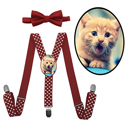 (QZ-Lee)/Accessories/Suspenders Cummerbunds/DIRECT FROM USA/QZ-Lee Cute Cat Suspender Bow Tie/Unisex Suspender/Adjustable Suspender/Y-Back Suspender