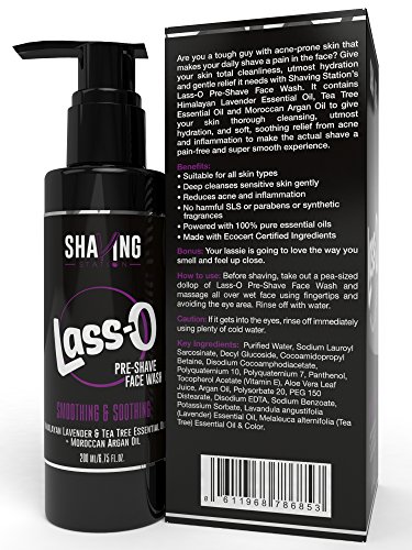 - Powered by pure botanical oils and essences of Lavender & Tea Tree, Lass-O Pre-Shave Face Wash Cleanser helps sooth and moisturize the skin providing it with luxury conditioning that combines nullifying toxins and lifting hair follicles allowing the blade to gently and easily slide across the skin for the closest, perfect flawless shave Great or all skin types including sensitive skin
