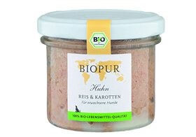 原材料:【原材料】Bioライス(40%)、Bioニンジン(21%)、Bio鶏肉(17%)、Bio鶏レバー、Bioサンフラワーオイル, 【分析値:カロリー120kcal/100g】粗タンパク質 6%、粗脂肪 2%、粗繊維 1.5%、粗灰分 2.5%、水分 75%、カルシウム 0.27%、リン 0.15%