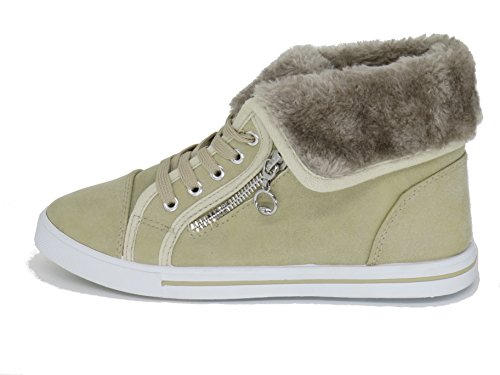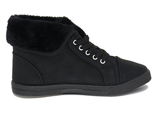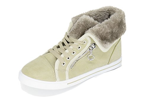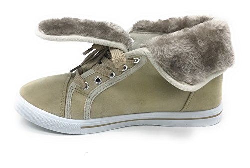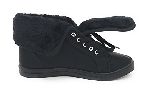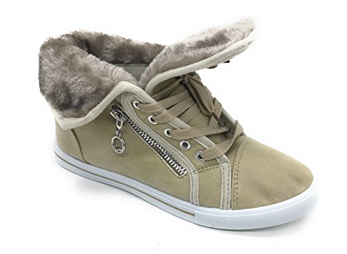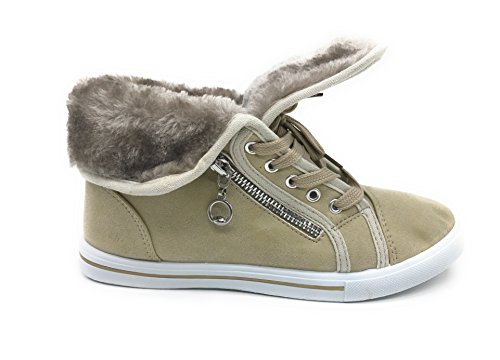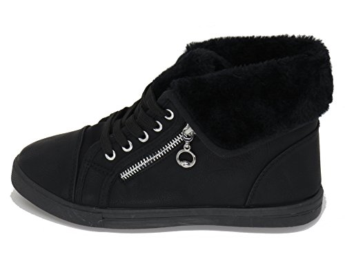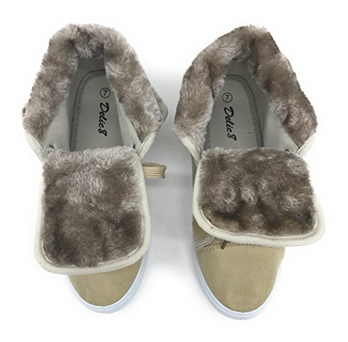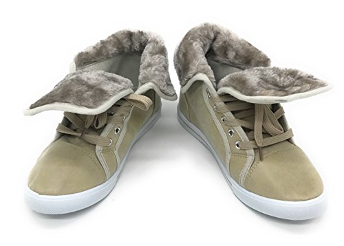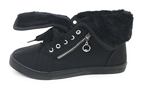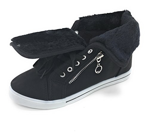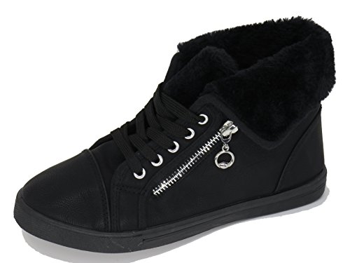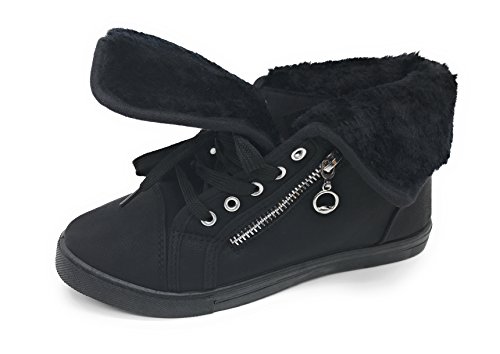 | EASY21 Women's Mid-Top Fur Lining Side Pocket Unique Zipper Sneaker Boot Shoes |