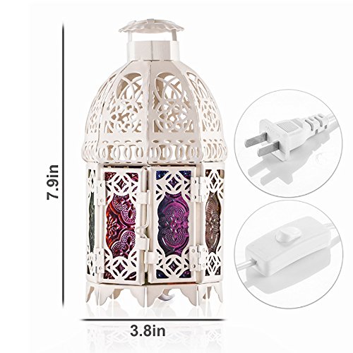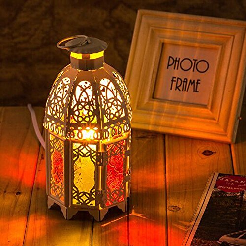 [Moroccan Vintage Style] Hollow out pattern on the top and 6 red/blue/green glass on the side. Not only a candle holder, but also a gorgeous decoration itself. Great for weddings, parties, patio, events.