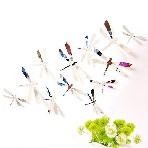 ufengke® 12-Pcs 3D Dragonflies Wall Stickers Fashion Design DIY Colorful Dragonfly Art Decals Crafts Home Decoration, Mirror