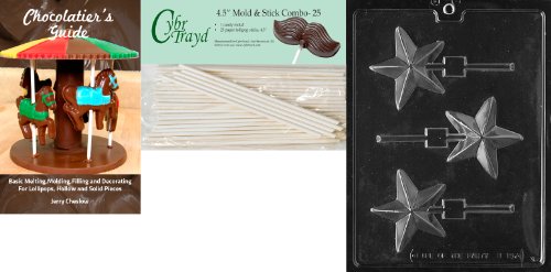 Cybrtrayd 45St25Bk-M157 'Star Lolly' Miscellaneous Chocolate Candy Mold with 25 4.5-Inch Lollipop Sticks and Chocolatier's Guide