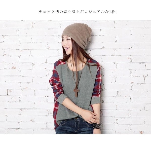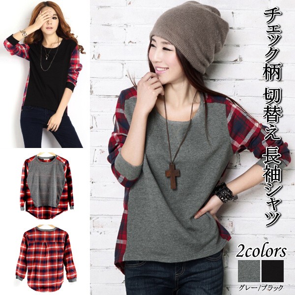 | 商品名 | チェック柄 切替え シャツ タータンチェック Tシャツ 長袖 |