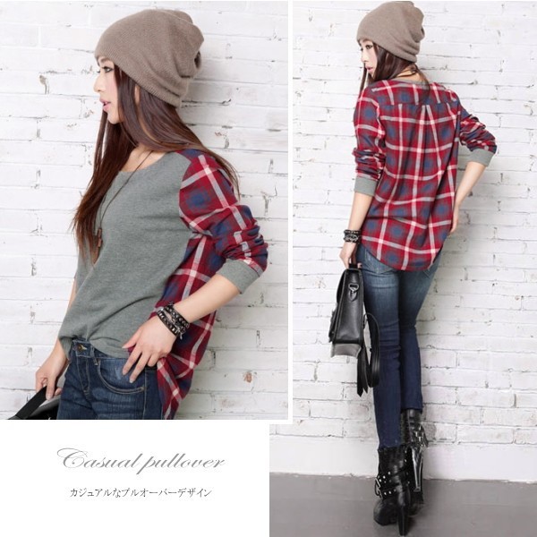 | 商品説明 | 長袖チェック柄切替え シャツ♪ タータンチェックのオシャレな切替えトップス♪ デニムと合うカジュアルデザインです。 |