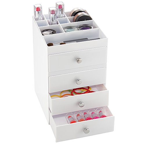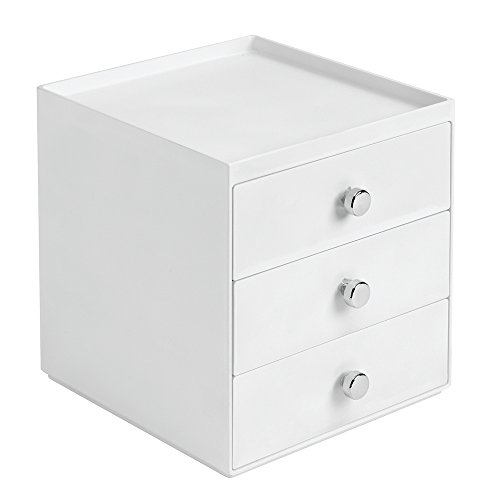Studio : InterDesign Publisher : InterDesign Binding : Misc. Product Description The InterDesign 3 Drawer Organizer is the perfect way to keep makeup and accessories conveniently stored. Made of durable White plastic with Chrome handles, it will look great on any counter. 0