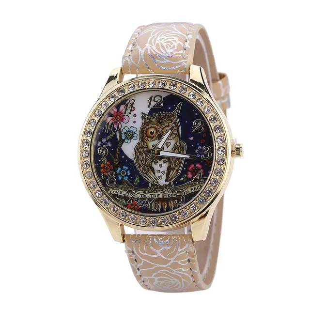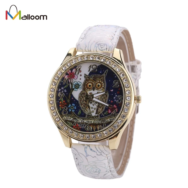 | [해외] 최고 브랜드 여성 럭셔리 석영 시계 여성 유니버설 만화 올빼미 커플 모조 다이아몬드 팔찌 시계 Relogio Feminino |