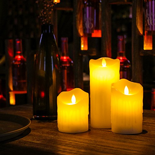 - FLICKERING FLAMELESS CANDLES:Real Drip Pillar Wax CANDLES with REALISTIC FLICKER and the flame,give you a REALISTIC APPEARANCE without the smoke,fake scent or messy dripping wax!