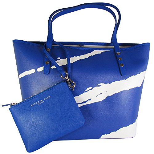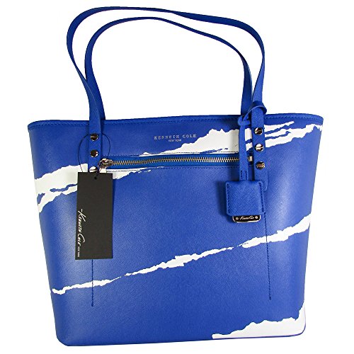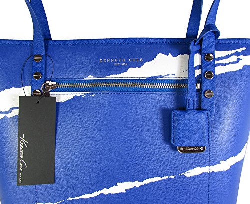 Kenneth Cole New York Womens Dover Street Leather Tote Bag, Cobalt/White