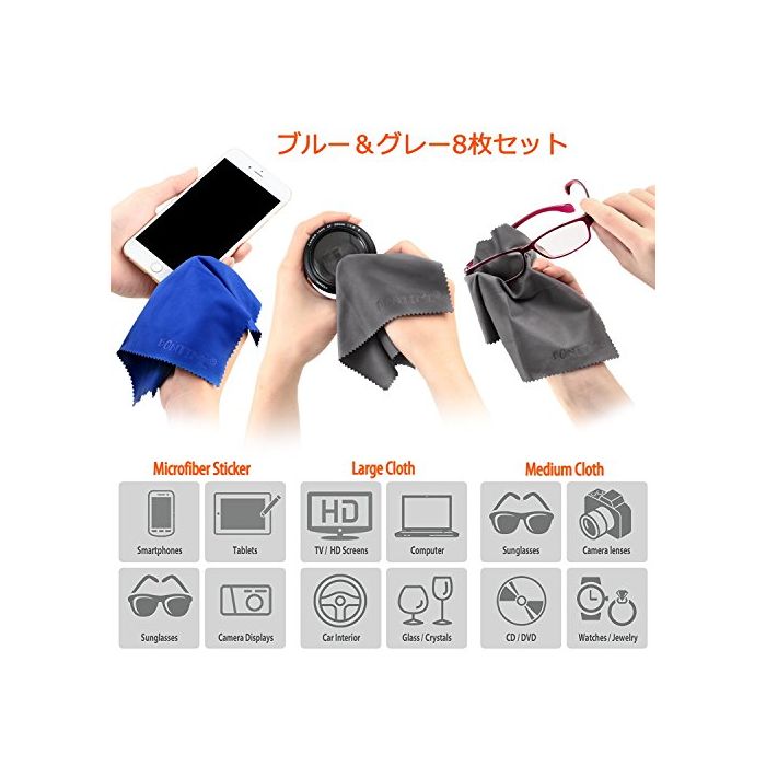 원본상품명: BONTIME クリニングクロス 超極細維/マイクロファイバ【カメラレンズ/スマホ/ メガネ/ 液晶/器】ギフト 20cm×18cm(8枚セット/個別包)グレ&ブル
