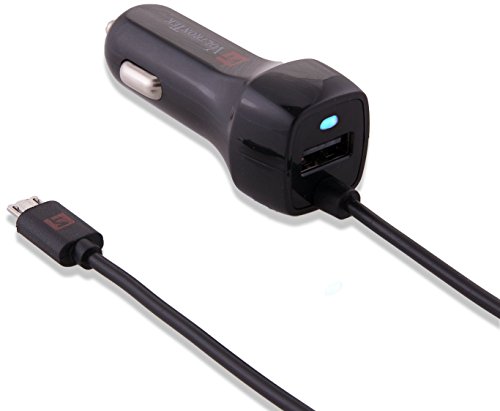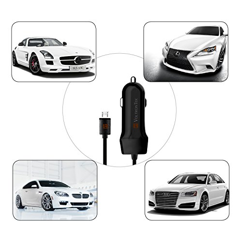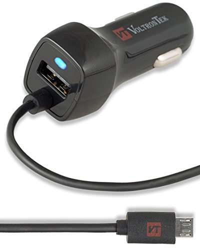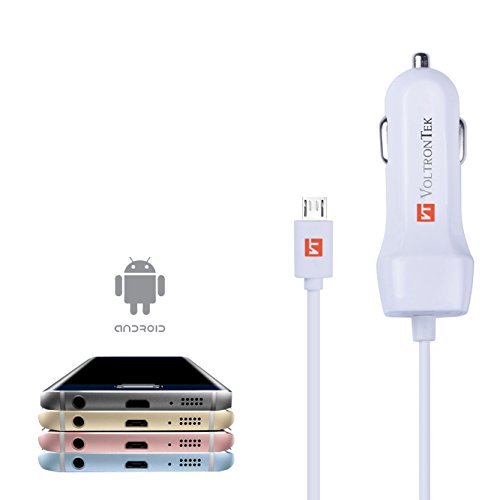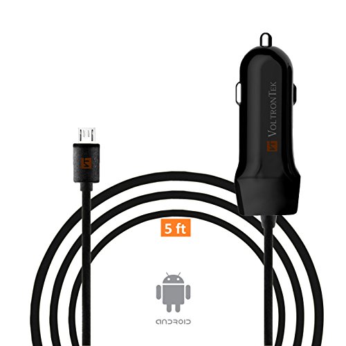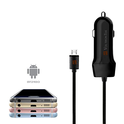 Micro USB Car Charger, VoltronTek Ultra Fast Travel Adapter with Extra Length Built-in Micro USB connector for Samsung Galaxy S7 S6 S5 S4 S3 Galaxy Tab Note 5 4 3 2 Google Nexus 7 and Extra USB Port