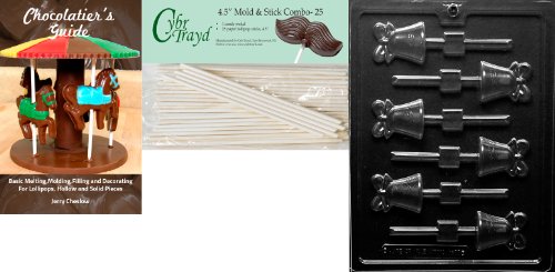 Cybrtrayd 'Wedding Bell Lolly' Wedding Chocolate Candy Mold with 25 4.5-Inch Lollipop Sticks and Chocolatier's Guide