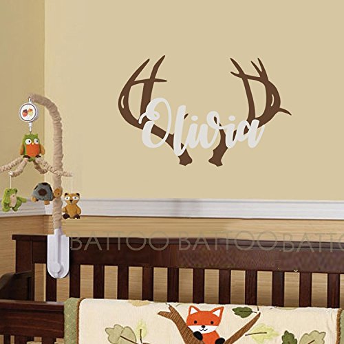 -. Title : BATTOO Personalized Name Wall Decal Deer Head Decor- Wall Decal Boys Hunting Themed Woodland Nursery Decor- Wall Decal Kids Deer Antler Wall Decor