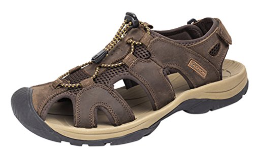 -. Binding : Apparel -. Brand : LOUECHY -. Department : mens -. Feature : Leather and mesh textile upper. / Integrated toe protection by toe bumper. / The adjustable hook-and-loop strap at instep and upper with stretchy laces be convenient to wear. / Soft EVA footbed provides for extra cushioning. Rubber outsole featuring directional pattern for increased traction. / Please identify the registered trademark: LOUECHY. Trademark in the USPTO, Registration Number: 5165552. Please refuses to counterfeit products. LOUECHY Brand is not responsible for other sellers selling any counterfeit merchandise. -. ProductGroup : Shoes -. ProductTypeName : SHOES -. Title : LOUECHY Men's Landam Fisherman Sandal Summer Outdoor Sandals Walking Water Shoes