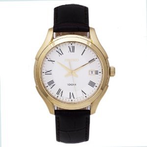 세이코import Seiko Mens SGEF72 Leather Synthetic Analog with White Dial Watch【병행수입】