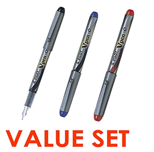 Pilot V Pen (Varsity) Disposable Fountain Pens, Black,Blue,Red Ink, Medium Point Value Set of 3(With Our Shop Original Product Description)