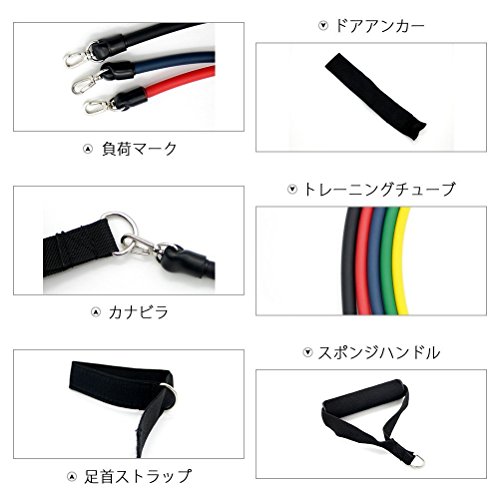 원본상품명: Vkaiy フィットネスチュ?ブ トレ?ニングチュ?ブ エクササイズバンド 5本セット 5段階負荷 エクササイズ ダイエット フィットネス シェイプアップ ストレッチ インナ?マッスル 筋トレ リハビ