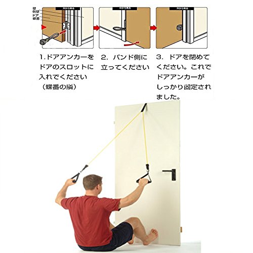 부속 도어 앵커를 도어의 틈에 사이에 두어 고정 하면,어깨,팔 등의 exa-크기에 효과적.