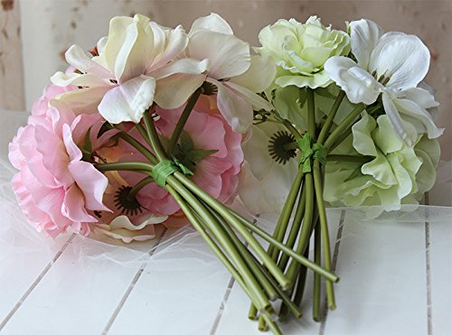 - Feature : Each bouquet has 9 stems/ 3 peonies, 3 anemones and 3 clusters of plastic flowers; / Each peony is 3.5''W, each anemone is 4''W; the whole bouquet is 8''W; / Made of soft silk, premium quality and beautiful color; / The listing price is for one bouquet, no pot included; / Ships from NY, US. Fast shipping, fast delivery. Shipping fee is not refundable;