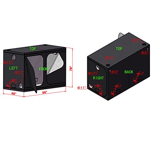-. Feature : Grow tent: 96% highly reflective waterproof diamond Mylar, heavy duty 600D lightproof oxford cloth, diameter16MM white paint coated metal rods and 16MM plastic corners , / 8" fan &filter &ducting &combo: Filter/8" Flange: 8" Flange: 22"H x 11"D, 950 Iodine Adsorption Value, Coal Based activated carbon; Fan/120V60HZ; 120V60HZ; 215Watt; 1.83A; 3000RPM; 720CFM; duct φ8" * 25FT, Galvanized steel Clamps