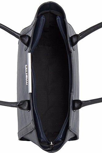 • Rich Saffiano 2 Tone Faux Leather. Top Zipper Closure