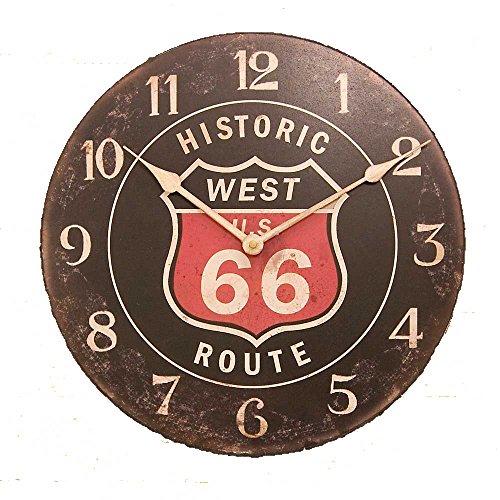 -. Title : ヒストリックルート66★ブラック・レトロ調・壁掛け時計★絵になるインテリア時計♪