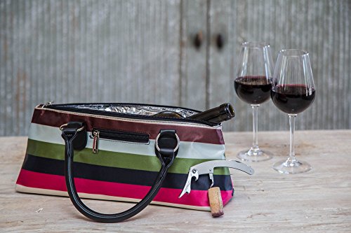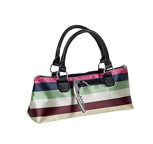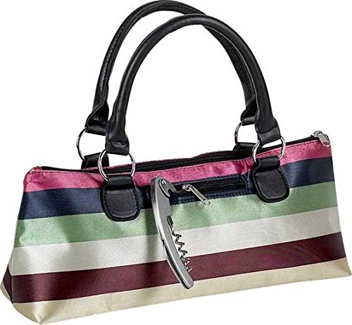 Studio : Happy Hour Publisher : Happy Hour Binding : Kitchen Product Description This cute wine clutch is perfect for the wine diva! Includes a stainless steel corkscrew and small front pocket. This bag is insulated so it will keep any liquid or food cool for several hours. Zipper top and Lightweight also! This wine purse is made with water resistant striped fabric. 0