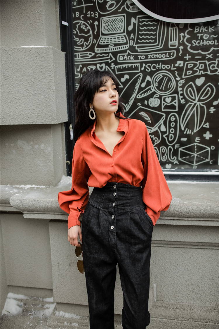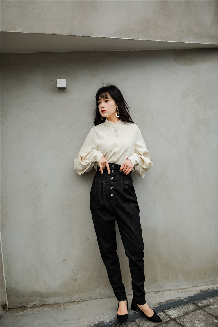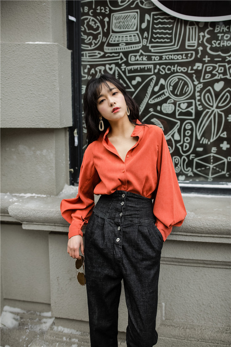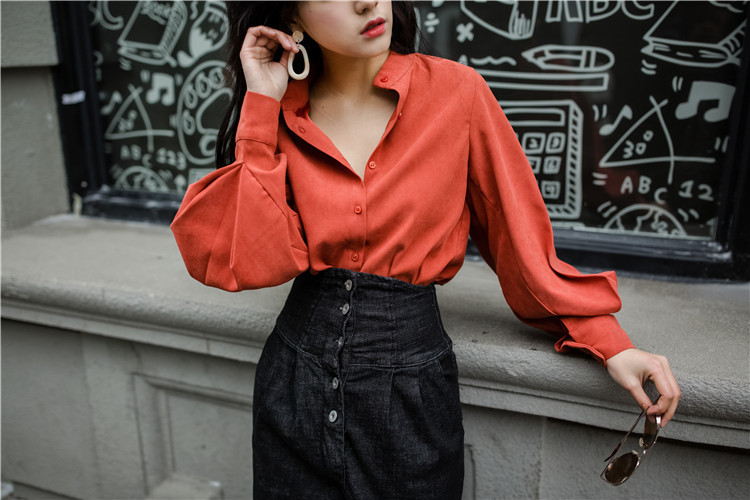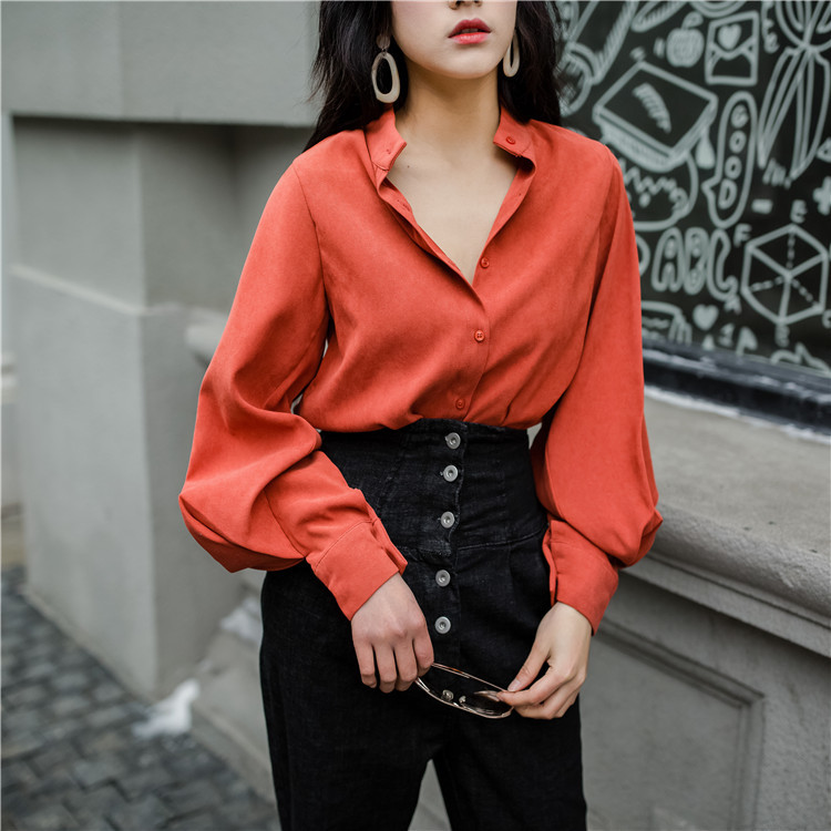 ボリューミーなランタンスリーブがエレガントな長袖ブラウスです。