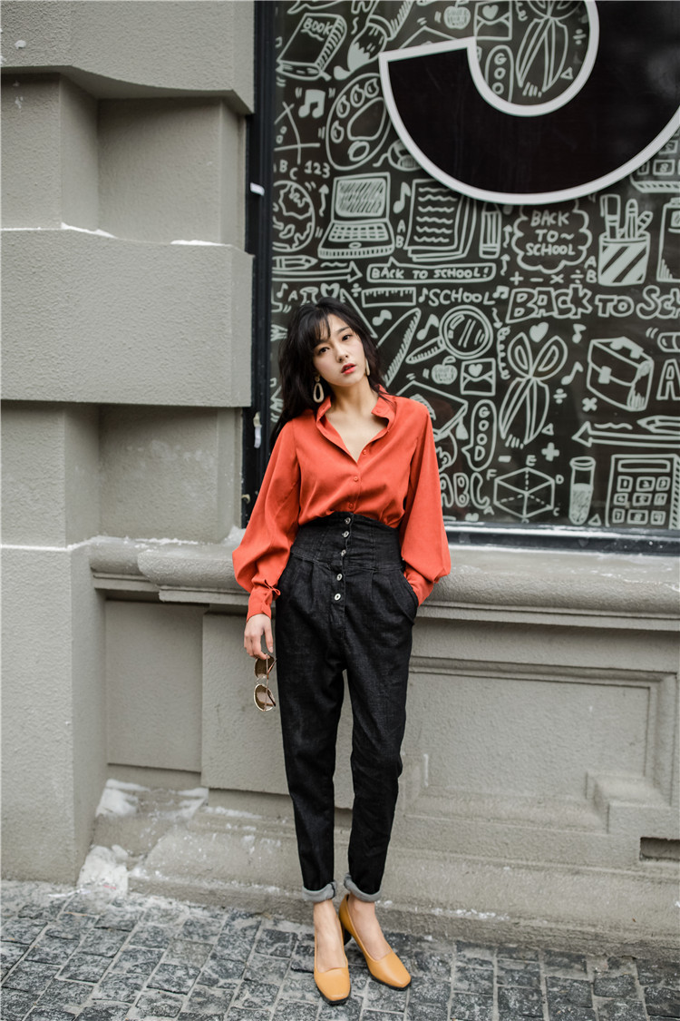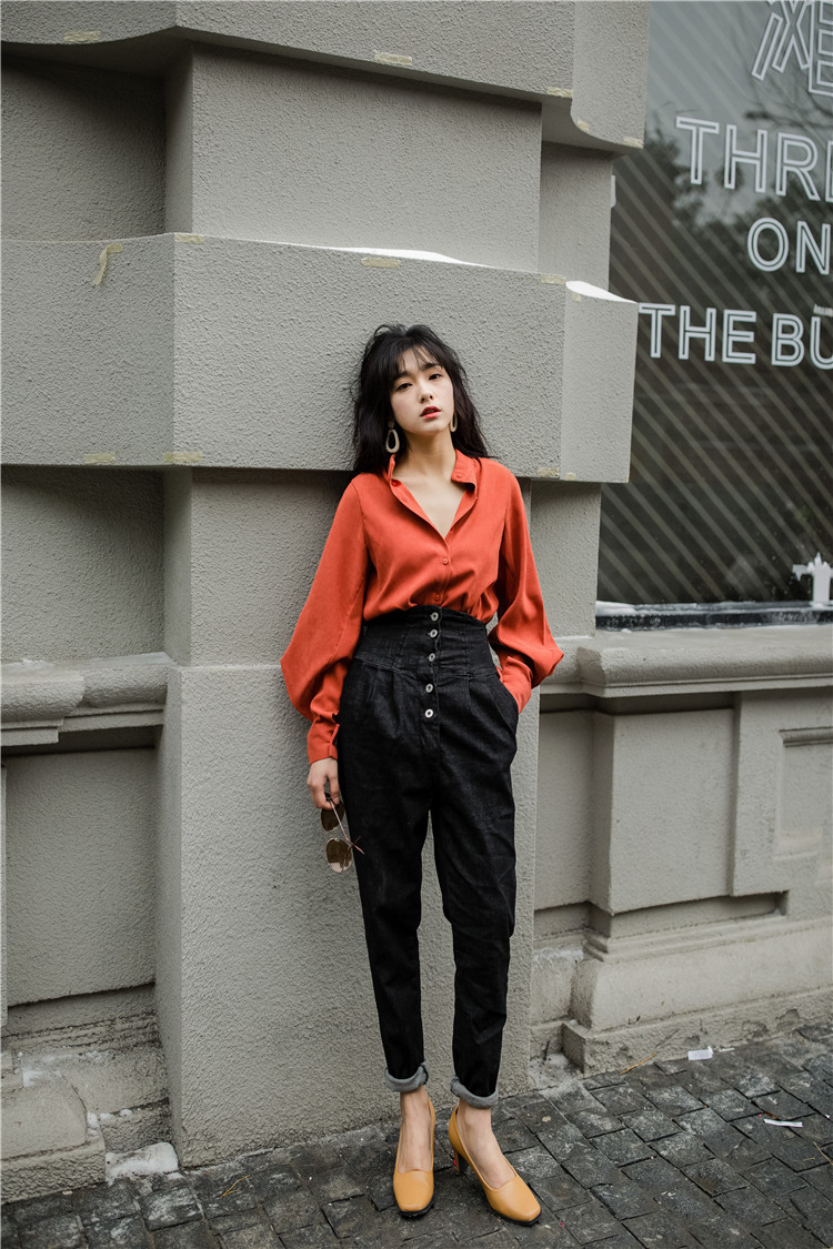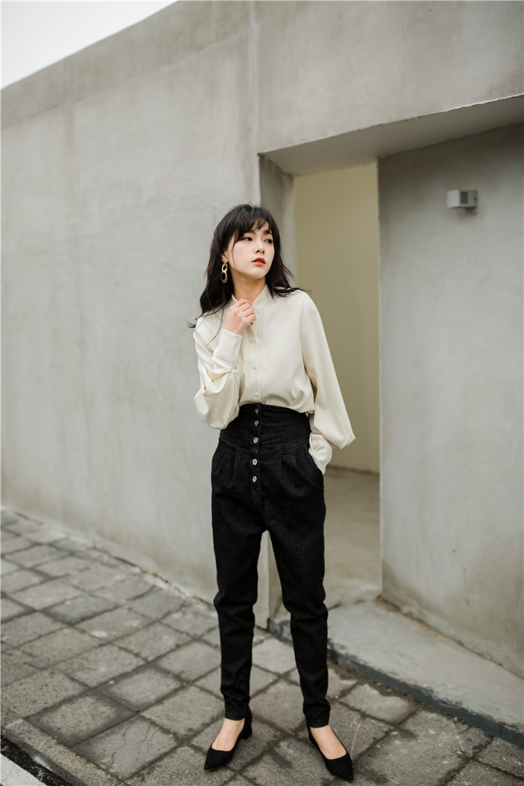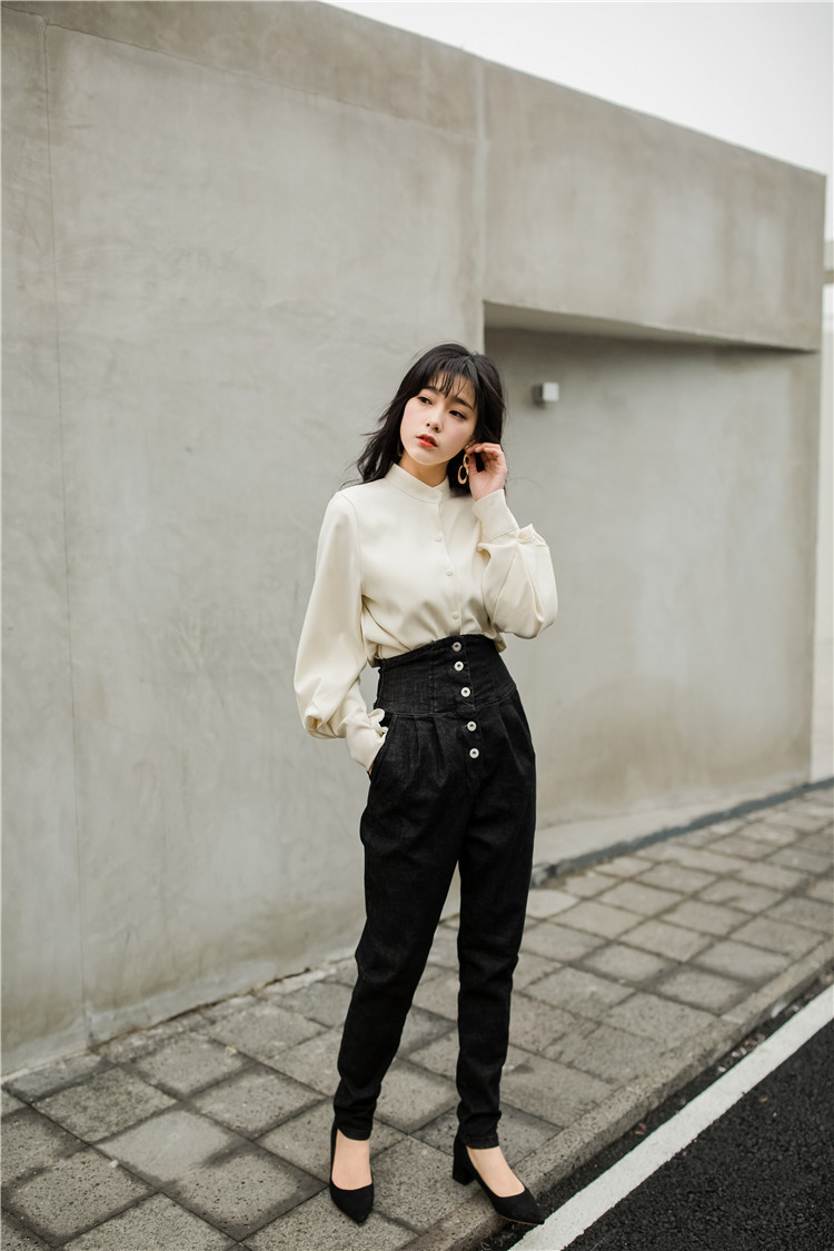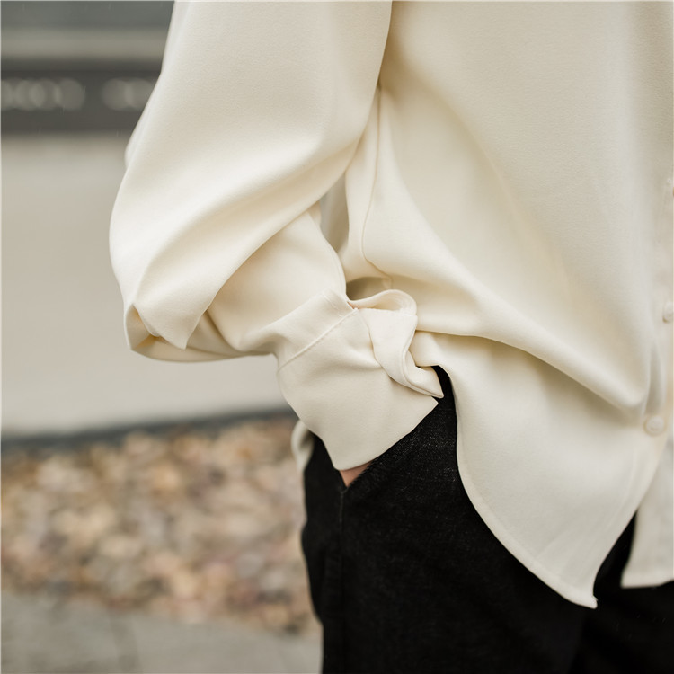 ボタンを留めてクールに、外せばセクシーな女性らしい印象に。