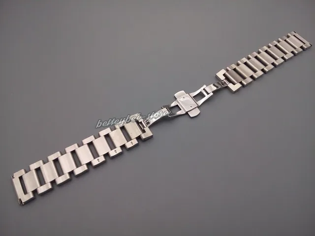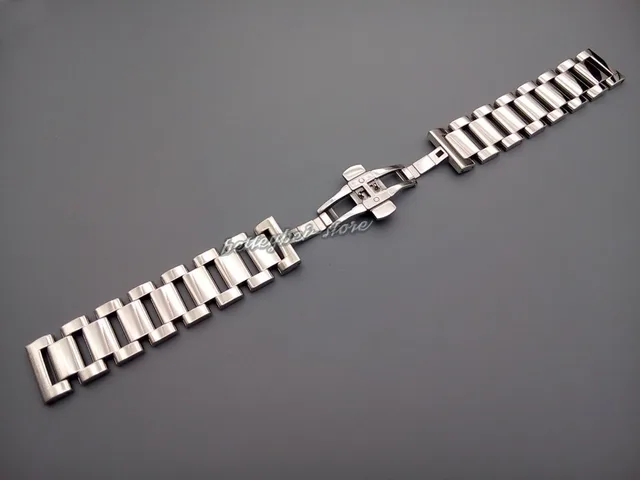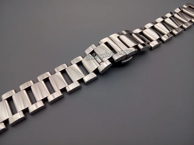 | [해외]18 미리메터 남성 레이디 316L 솔리드 스테인레스 스틸 링크 광택 시계 밴드 스트레이트 엔드 배포 더블 푸시 버클 버클 팔찌 |