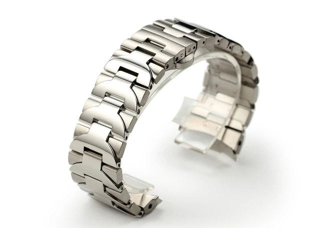 | [해외]24 미리메터 남성 기계식 석영 시계 손목 시계 실버 전체 스테인레스 스틸 시계 스트랩 배포 걸쇠 남성 손목 시계 밴드 |