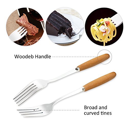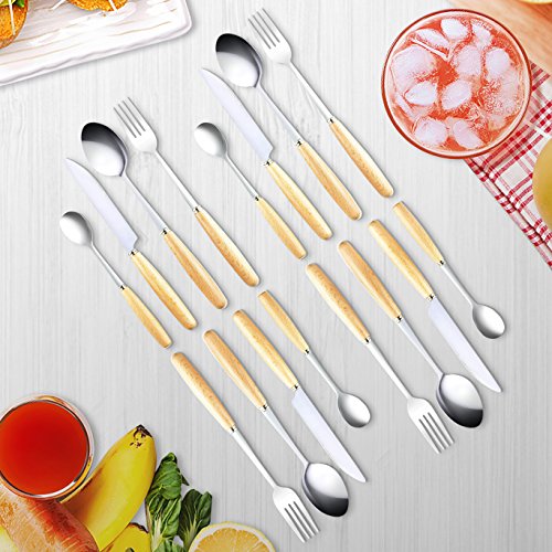 (Teivio)/Kitchen Dining/Tableware/DIRECT FROM USA/Teivio 16-Piece Flatware Set Wooden Handle Stainless Steel Tableware Silverware Dinnerware Set ...
