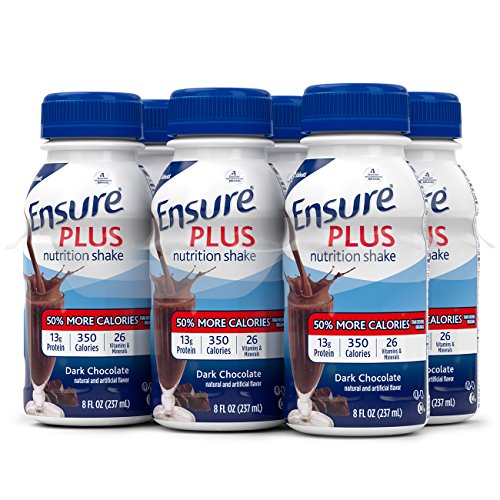 -. Binding : Health and Beauty -. Brand : Ensure -. EAN : 0070074538099 -. Feature : STRENGTH & ENERGY: Feel more strength and energy in just two weeks* with our complete and balanced nutritional shakes from the #1 doctor-recommended brand / COMPLETE NUTRITION: Each Ensure Plus Shake provides 350 nutrient-rich calories (50% more than Ensure Original) and 13 grams of protein to provide you with complete nutrition at less than $2 per serving / GREAT TASTE: A great tasting way to get protein and antioxidants (Vitamins C, E & Selenium) every day / Gluten-free and suitable for lactose intolerance (Not for people with galactosemia) / DAILY USE: Drink 1-2 shakes daily to feel improved strength and energy -. IsAdultProduct : 0 -. Label : Ensure -. Manufacturer : Ensure -. Model : 57266C -. MPN : 57266C -. NumberOfItems : 4 -. PackageQuantity : 4 -. PartNumber : 57266C -. ProductGroup : Health and Beauty -. ProductTypeName : HEALTH_PERSONAL_CARE -. Publisher : Ensure -. ReleaseDate : 2009-02-17 -. Size : Pack of 4 -. Studio : Ensure -. Title : Ensure Plus Nutrition Shake with 13 grams of protein, Meal Replacement Shakes, Dark Chocolate, 8 fl oz (24 Count) -. UPC : 070074538099