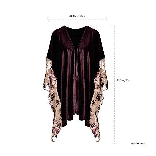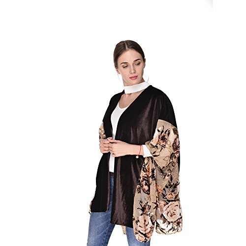 | (Ju7cer)/Accessories/Scarves/DIRECT FROM USA/Women's Floral Print Velvet Loose Kimono Cardigan Capes |