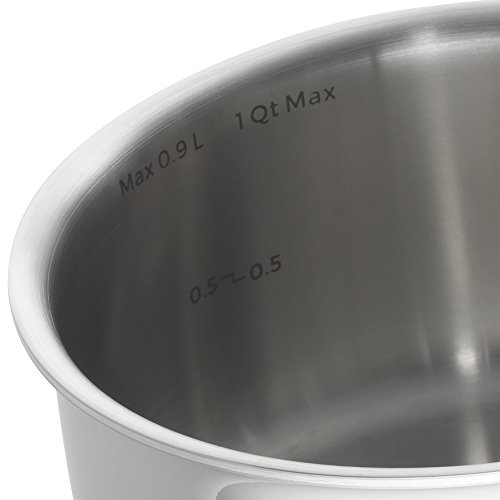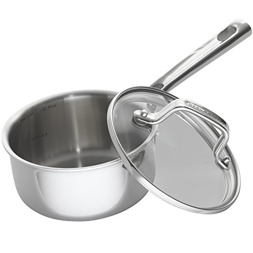 Everyone loves the clean look and easy cleanup of stainless steel and the quick, even heating of aluminum, and in my Emeril Lagasse tri-ply stainless steel cookware, you get the best of both materials combined. The pots and pans are comprised of fused layers of aluminum and stainless steel which means quick, even heat distribution and non-reactive, easy to clean cooking and outer surfaces. In the simplest of terms -- a cook’s dream. See-through, tempered glass lids mean that you can monitor the cooking process without opening lids and losing precious steam. This cookware also goes from stovetop to oven without missing a beat. An added plus: if you are a fan of induction cooking, this cookware will perform flawlessly on your induction cook top. Handles are designed to fit the hand well and are also hollow, meaning they stay cool to the touch on the cooktop. When you’re finished cooking, these pots go right in the dishwasher for easy cleaning. The small 1 quart saucepan is perfect for boiling eggs, reheating soup, making sauce for 2, or steaming small portions of vegetables.Feature
