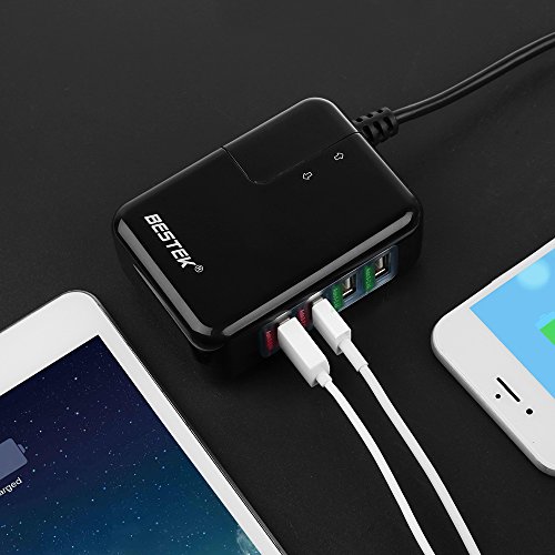 USB Wall Charger Multiport, BESTEK 35W 4 Port Power Converter with US UK EU International Travel Converter and Adapter Power Port 4 Charging Station Desktop Charger Black